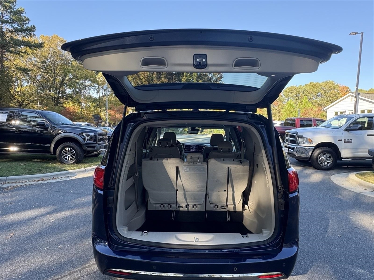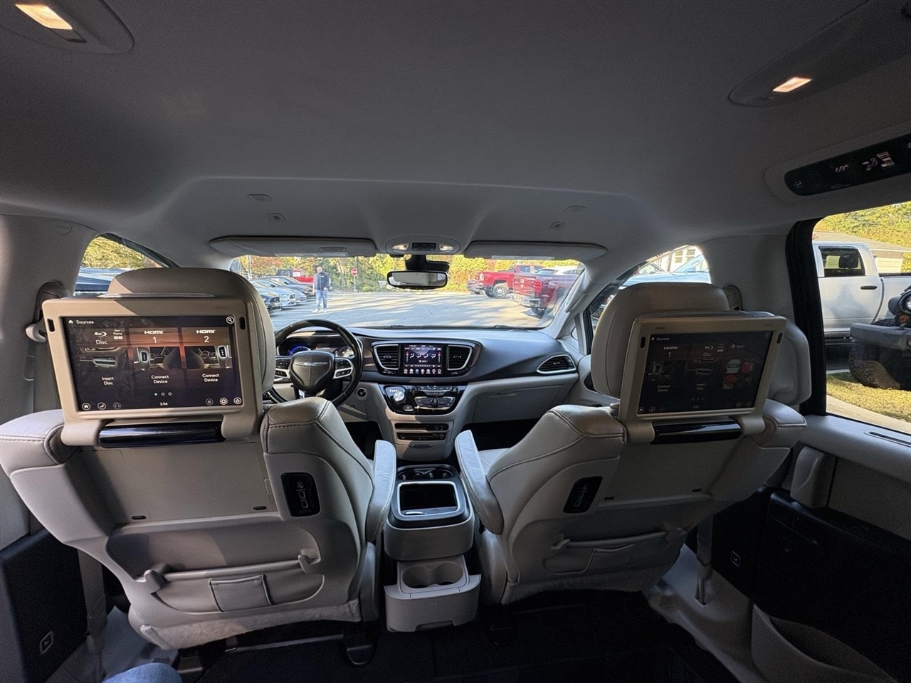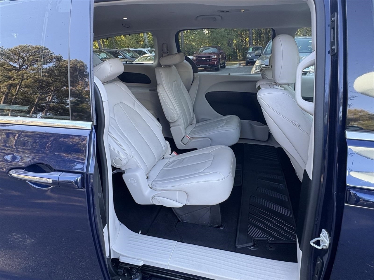 Jazz Blue Pearlcoat 2019 Chrysler Pacifica Touring L Plus FWD 3.6L V6 24V VVT 9-Speed 948TE Automatic Clean CARFAX.13 Speakers, 17" x 7.0" Polished Aluminum Wheels, 18" x 7.5" Painted Aluminum Wheels, 3.25 Axle Ratio, 360 Surround View Camera System, 3rd row seats: split-bench, 4-Wheel Disc Brakes, A/V remote, ABS brakes, Adaptive Cruise Control w/Stop & Go, Advanced Brake Assist, Advanced SafetyTec Group, Air Conditioning, Alloy Seats, Alloy wheels, AM/FM radio: SiriusXM, Apple CarPlay/Android Auto, Auto-dimming Rear-View mirror, Automatic High Beam Headlamp Control, Automatic temperature control, Blind Spot & Cross Path Detection, Bodyside moldings, Brake assist, Bumpers: body-color, CD player, Compass, Delay-off headlights, Driver door bin, Driver vanity mirror, Driver's Seat Mounted Armrest, Dual front impact airbags, Dual front side impact airbags, DVD-Audio, Electronic Stability Control, Emergency communication system: Uconnect Access, Four wheel independent suspension, Front anti-roll bar, Front Bucket Seats, Front dual zone A/C, Front fog lights, Front reading lights, Full Speed Forward Collision Warning Plus, Fully automatic headlights, Garage door transmitter, Hands Free Power Liftgate, Hands Free Sliding Door & Liftgate Group, Hands Free Sliding Doors, Headphones, Heated door mirrors, Heated front seats, Heated rear seats, Heated steering wheel, Illuminated entry, KeySense, Knee airbag, Lane Departure Warning Plus, Leather steering wheel, Low tire pressure warning, Michelin Brand Tires, Navigation System, Occupant sensing airbag, Outside temperature display, Overhead airbag, Overhead console, Panic alarm, Parallel & Perp Park Assist w/Stop, ParkSense Front/Rear Park Assist w/Stop, ParkView Rear Back-Up Camera, Passenger door bin, Passenger seat mounted armrest, Passenger vanity mirror, Perforated Leather Trim Bucket Seats, Power door mirrors, Power driver seat, Power Liftgate, Power passenger seat, Power steering, Power windows, Quick Order Package 27J, Radio data system, Radio: Uconnect 4C Nav w/8.4" Display, Rain sensing wipers, Rain Sensitive Windshield Wipers, Rear air conditioning, Rear reading lights, Rear window defroster, Rear window wiper, Reclining 3rd row seat, Remote keyless entry, Roof rack, Security system, Speed control, Split folding rear seat, Spoiler, Steering wheel mounted audio controls, Tachometer, Telescoping steering wheel, Tilt steering wheel, Tire & Wheel Group, Touring Suspension, Traction control, Trip computer, Variably intermittent wipers, Voltmeter.