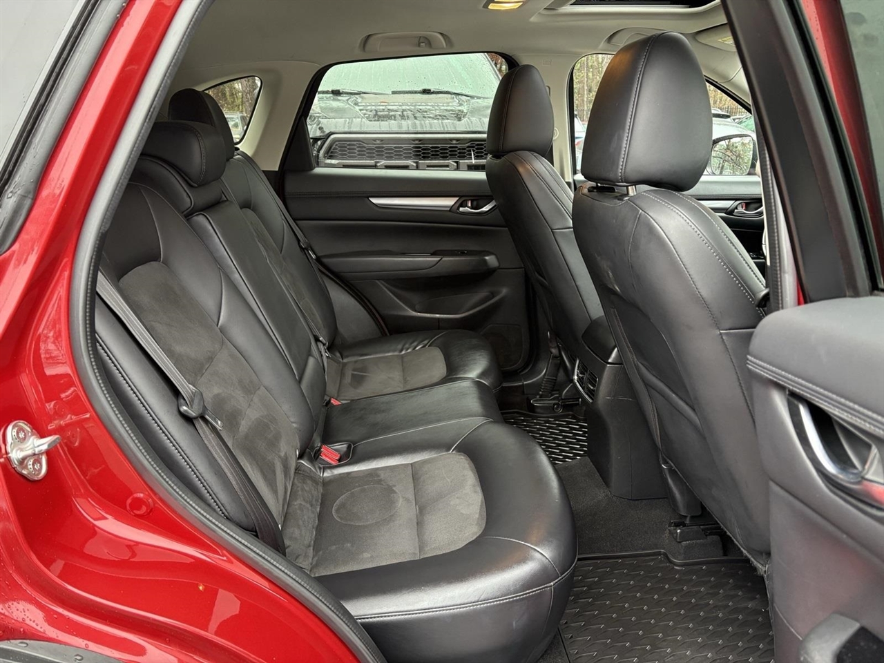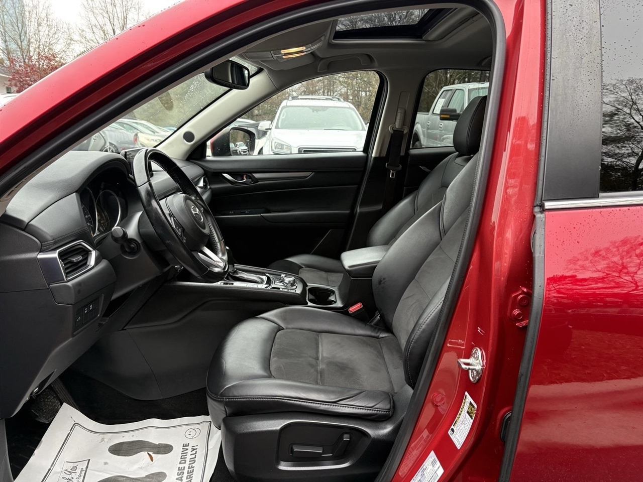Soul Red Crystal Metallic 2018 Mazda CX-5 Touring AWD SKYACTIV® 2.5L 4-Cylinder DOHC 16V 6-Speed Automatic19 x 7J Aluminum Alloy Wheels, 4-Wheel Disc Brakes, 4.624 Axle Ratio, 6 Speakers, ABS brakes, Air Conditioning, Alloy wheels, AM/FM radio, Auto Dimming Rearview Mirror w/HomeLink, Auto High-beam Headlights, Automatic temperature control, Bose 10-Speaker Audio Sound System, Brake assist, Bumpers: body-color, Delay-off headlights, Driver door bin, Driver vanity mirror, Dual front impact airbags, Dual front side impact airbags, Electronic Stability Control, Emergency communication system, Exterior Parking Camera Rear, Four wheel independent suspension, Front anti-roll bar, Front Bucket Seats, Front Center Armrest, Front dual zone A/C, Front reading lights, Fully automatic headlights, Heated front seats, Heated Front Sport Shape Seats, Illuminated entry, Leather Shift Knob, Leatherette Seat Trim, Low tire pressure warning, Mazda Navigation System, Occupant sensing airbag, Outside temperature display, Overhead airbag, Overhead console, Panic alarm, Passenger door bin, Passenger vanity mirror, Power door mirrors, Power driver seat, Power Rear Liftgate, Power Sliding-Glass Moonroof w/Interior Sunshade, Power steering, Power windows, Preferred Equipment Package, Radio data system, Radio: AM/FM/HD Audio System, Rain sensing wipers, Rear anti-roll bar, Rear reading lights, Rear seat center armrest, Rear window defroster, Rear window wiper, Remote keyless entry, Soul Red Crystal Metallic Paint, Speed control, Speed-sensing steering, Split folding rear seat, Spoiler, Steering wheel mounted audio controls, Tachometer, Telescoping steering wheel, Tilt steering wheel, Traction control, Trip computer, Turn signal indicator mirrors, Variably intermittent wipers, Wheel Locks.
